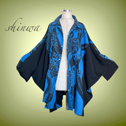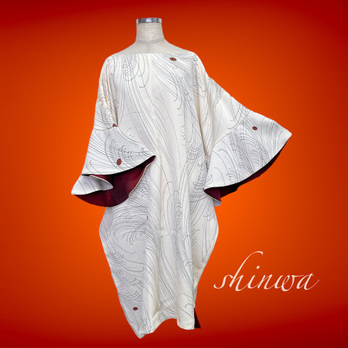 ロング丈 赤黒 着丈 138cm ドレープ袖 着物ガウン